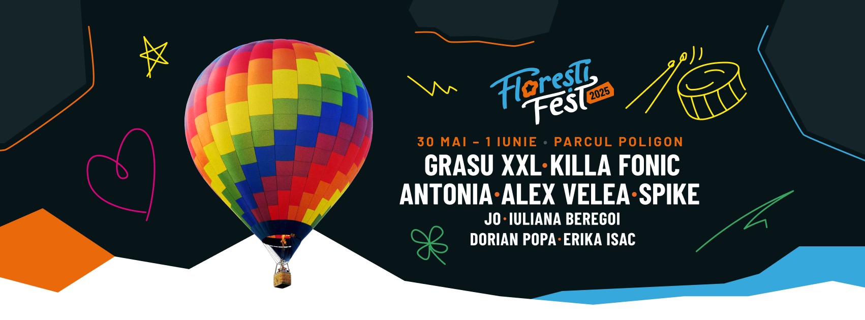 Accesul la Florești Fest este gratuit, iar locația – Esplanada Centrală și Parcul Poligon – va fi animată de activități diverse, de la mascote pentru cei mici, la zone de relaxare, mâncare bună și băuturi răcoritoare pentru părinți.